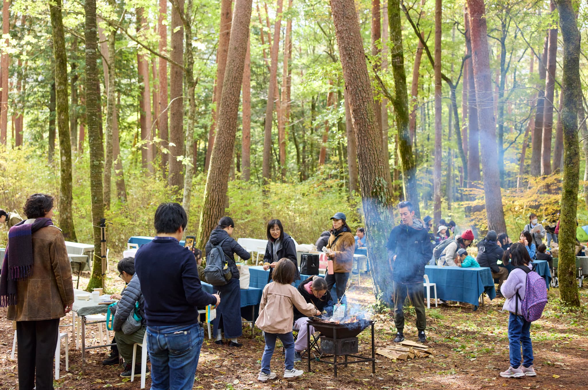また、来場者が持参したアルミホイルに包んだ芋やソーセージ、マシュマロを焚火であぶって食べる姿も見られ、森には常においしそうな香りが満ちています。