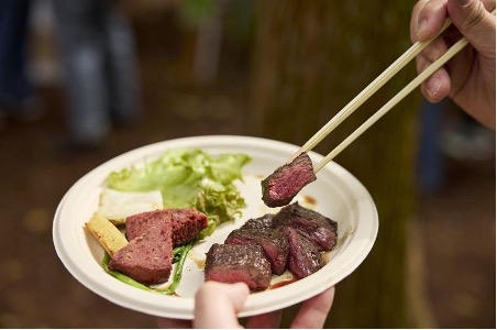 奥の森に出店した食堂野山のメニューは今年も大人気。写真は鹿炭火焼き。このほか、じっくり野菜を炒めて作った(グルテンフリー)鹿カレーにも行列ができていた。