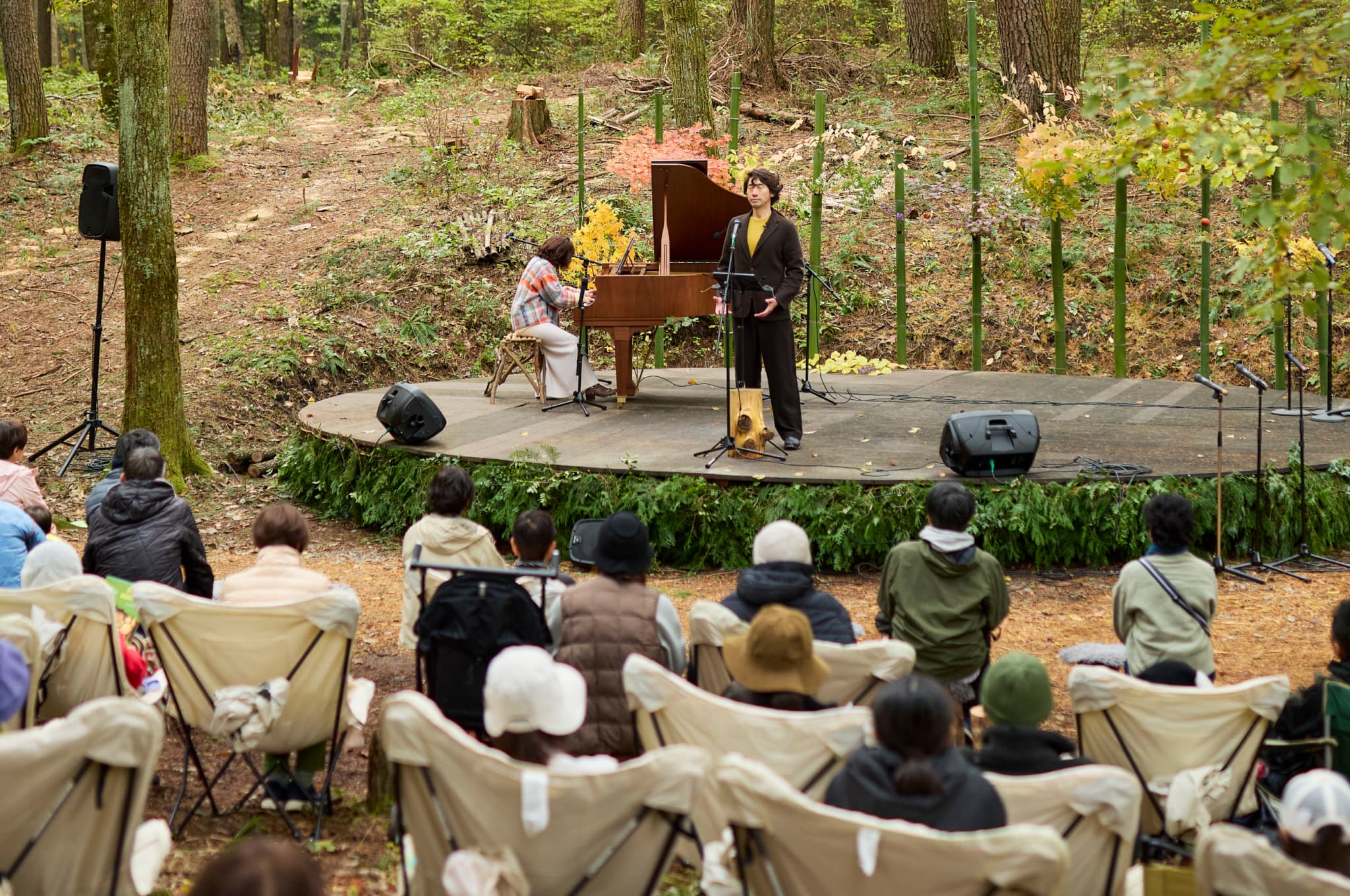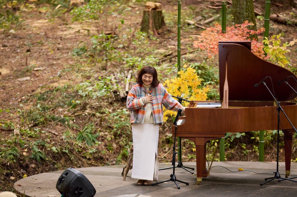 続く平澤さんのピアノソロ、ベートーヴェン《月光》第3楽章では、会場の空気がさらに深まり、森全体が震えるような迫力に包まれました。“森で聴く音楽”が唯一無二の体験となっていきます。